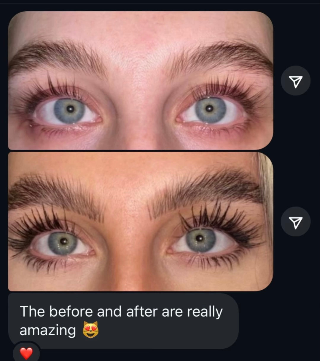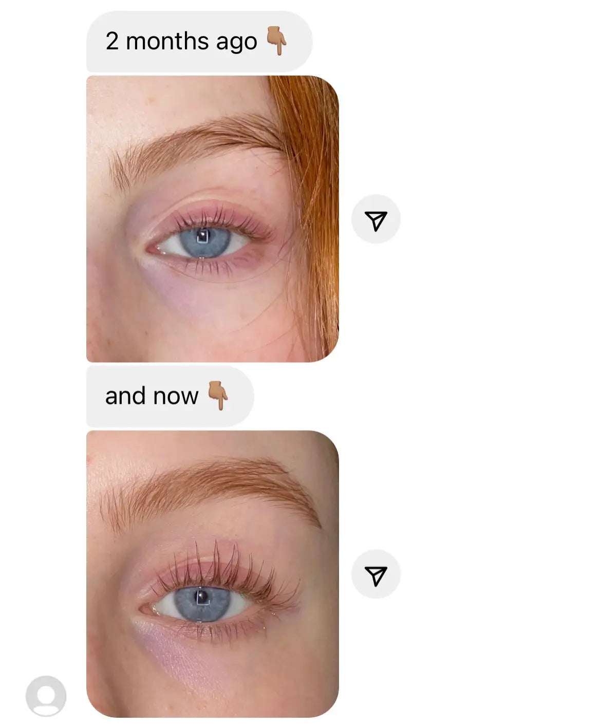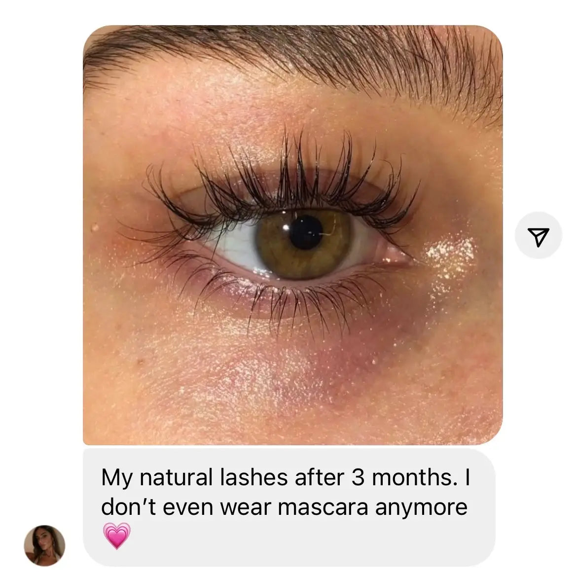 After consistent daily use, lashes look noticeably longer, fuller, stronger, and healthier — with improved density and natural curl.